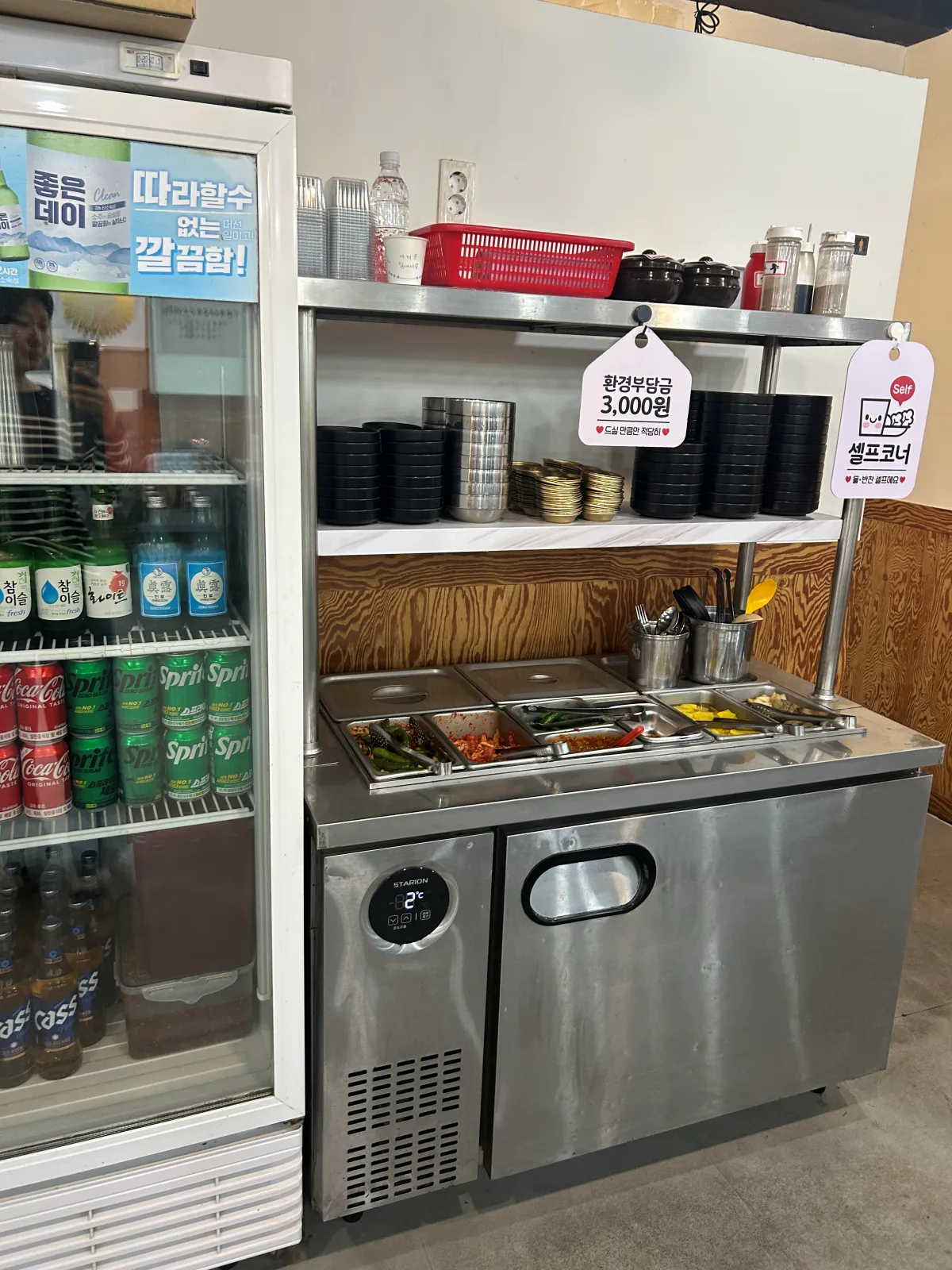 직원들이 사용하는 호칭을 듣고 가족이 운영하는 가게라고 짐작을 할 수 있었어요. 주방도 오픈형식이라 깔끔했고요. 샐프바도 있어서 눈치 없이 반찬을 가져다 먹기 좋았어요. 보통 계산대 옆에 커피 자판기를 두는 곳은 많은데 요즘 요구르트까지 준비해 두는 곳은 보기 힘들잖아요. 여기는 아이들을 위한 후식으로 요구르트까지 준비를 해두신 사장님의 배려가 돋보이더라고요. 그리고 식사 중에도 직원분이 오셔서 부족한 거 없는지 한 번 더 체크를 해주시더라고요. 감동이었습니다.