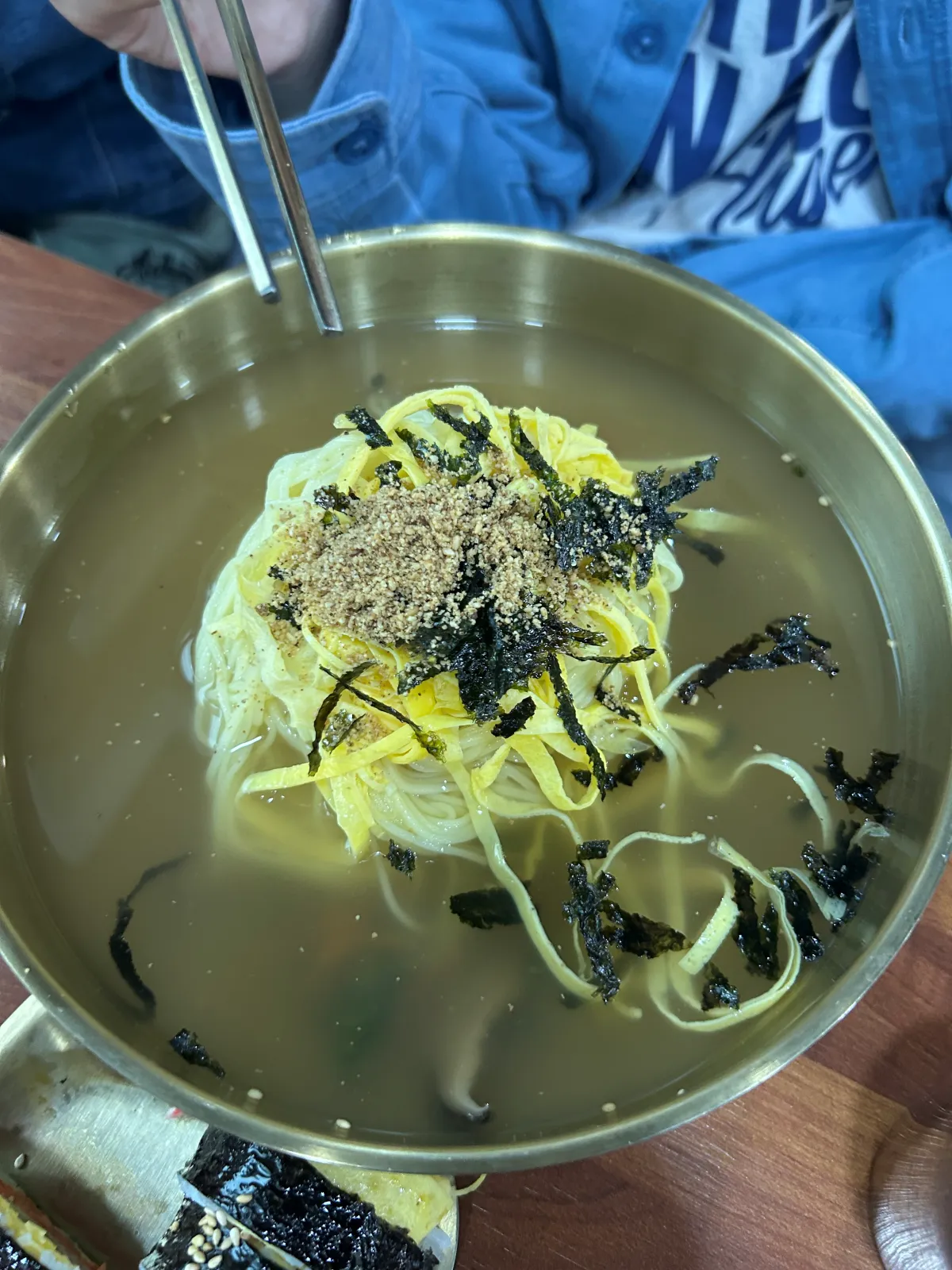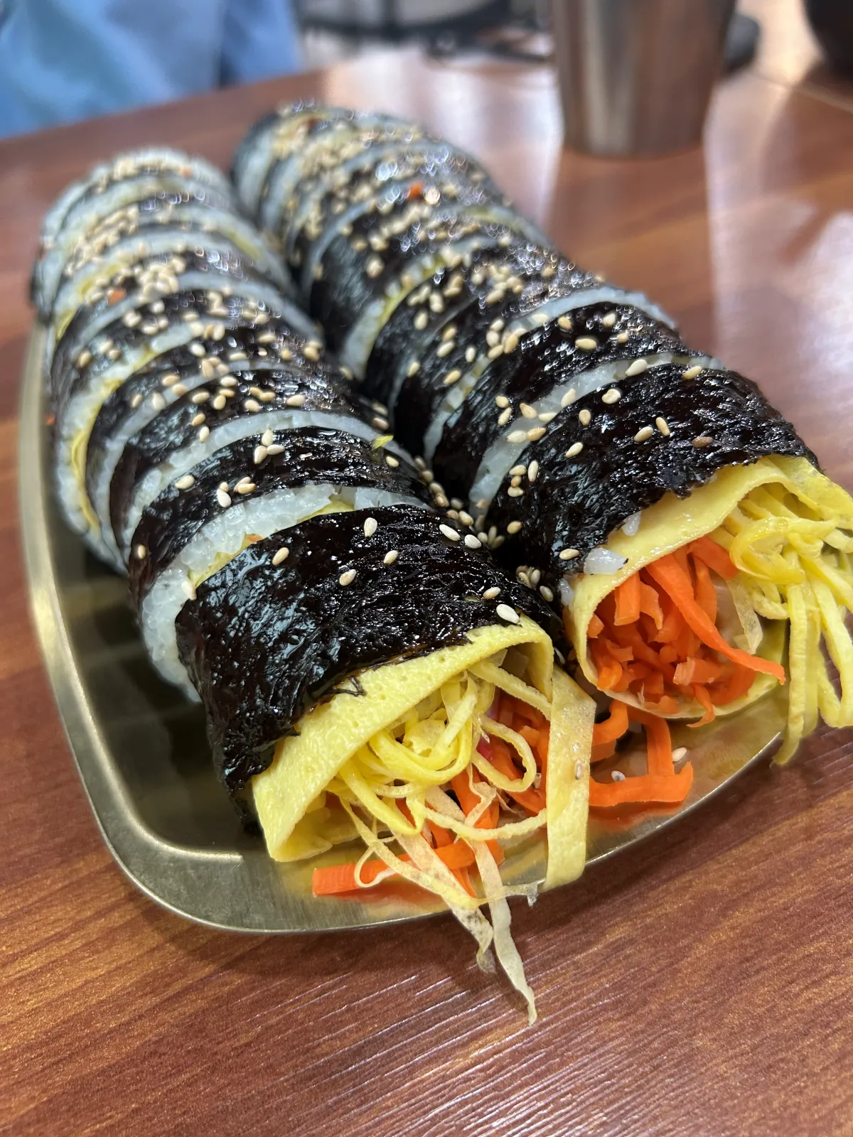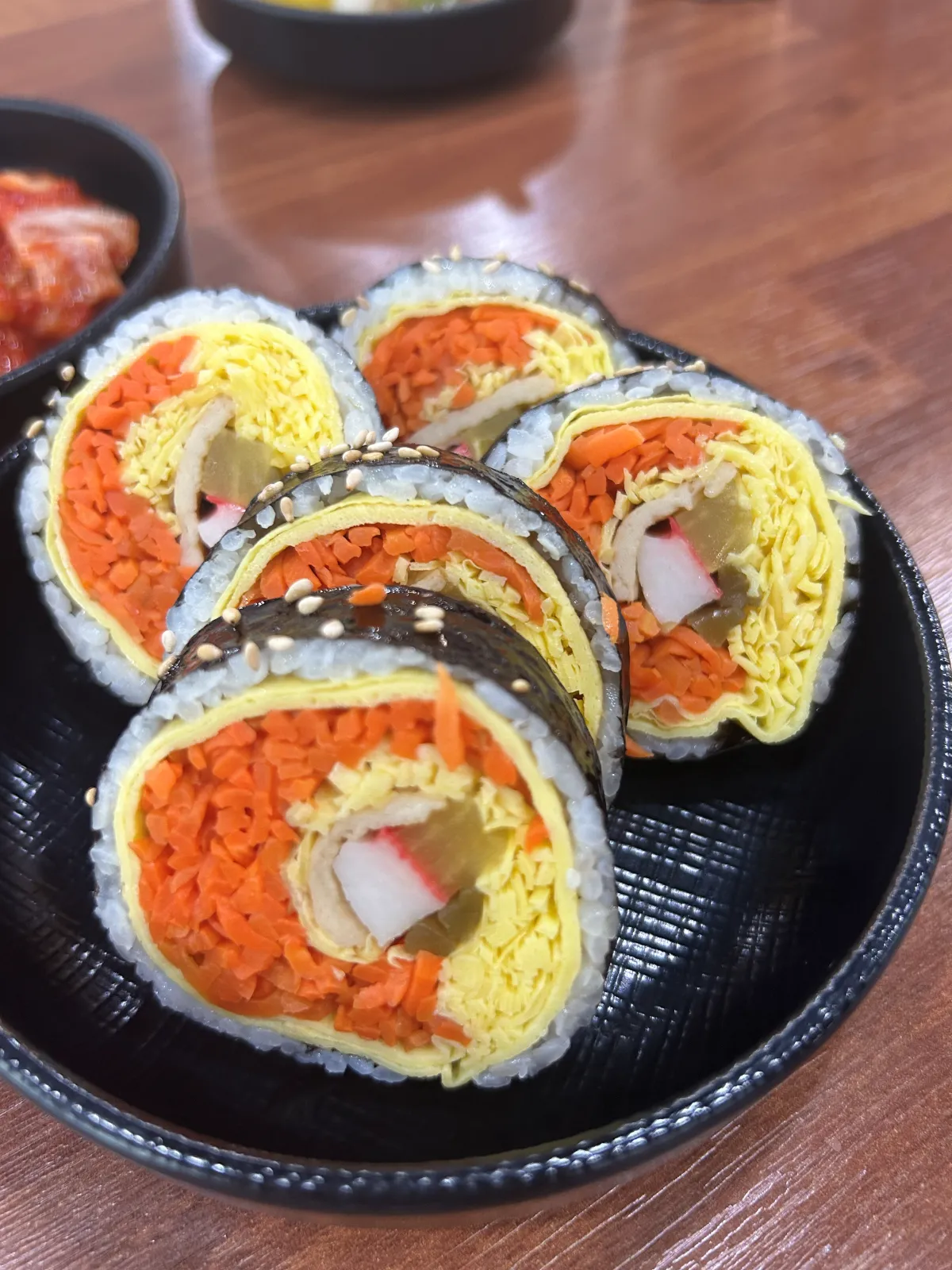 국수전문가게지만 김밥도 엄청 정성을 들여서 만드시더라고요. 주문이 들어오면 즉석에서 바로 말아주시는 방식인데요. 당근과 계란이 듬뿍 들어간 김밥맛집이더라고요.