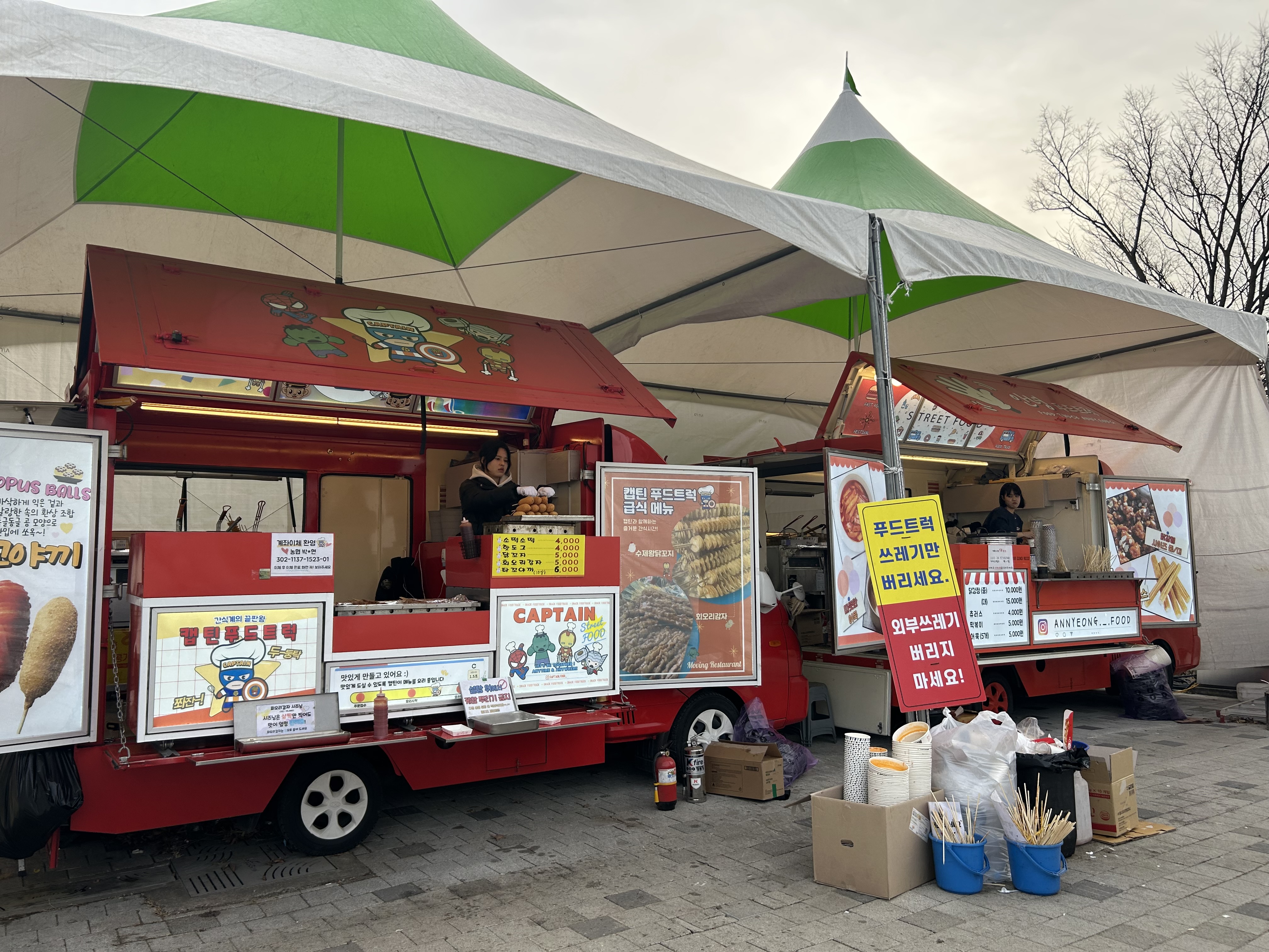 그러나 매점이랑 식사를 할 수 있는 쉼터공간의 위치가 끝과 끝이에요. 그게 좀 아쉬웠어요 날씨도 추운데 들고 가다 면도 불고 음식도 식어서 별로였어요.