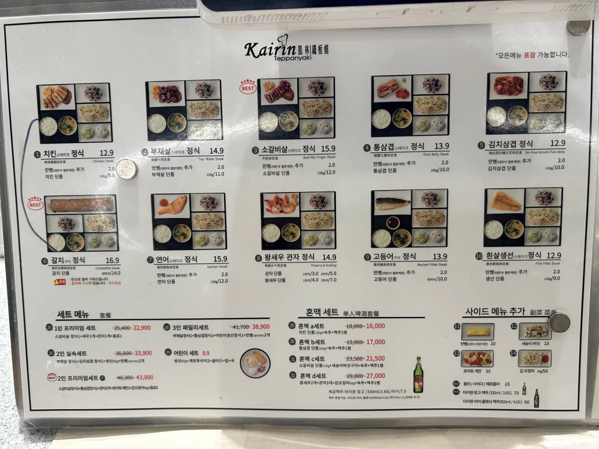 저는 저번에 다음에 오면 먹어 봐야지 했던 가게가 있었거든요. 바로 철판요리가 유명한 카이린인데요. 메뉴판을 보면 음식이 엄청 먹음직스럽다더라고요. 그래서 다음에 오면 꼭 여기서 먹어야지 하고 다짐했었죠.