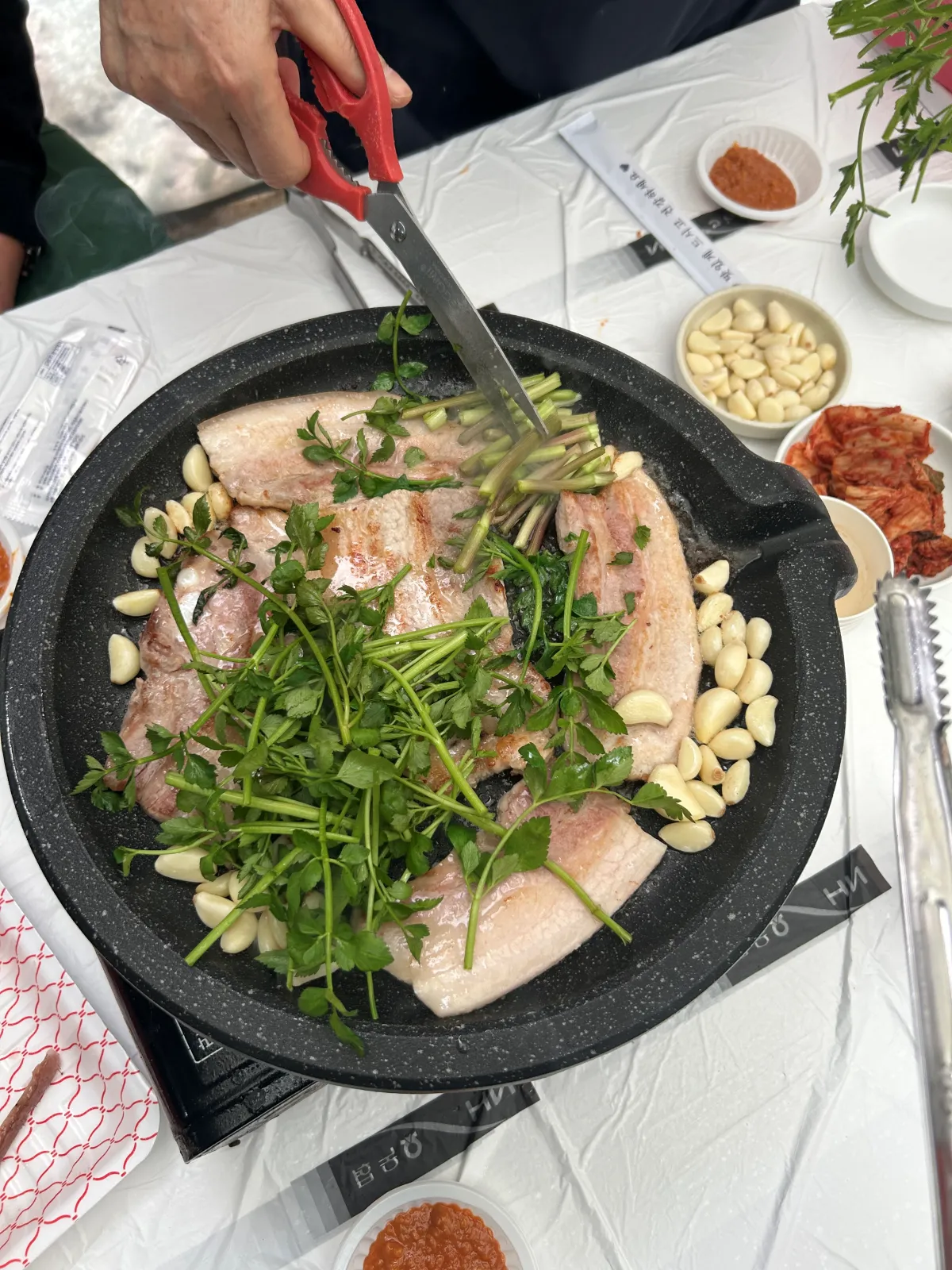 그리고 생미나리로 먹는 거보다 돼지기름에 구워서 먹으니 훨씬 부드럽고 맛있더라고요