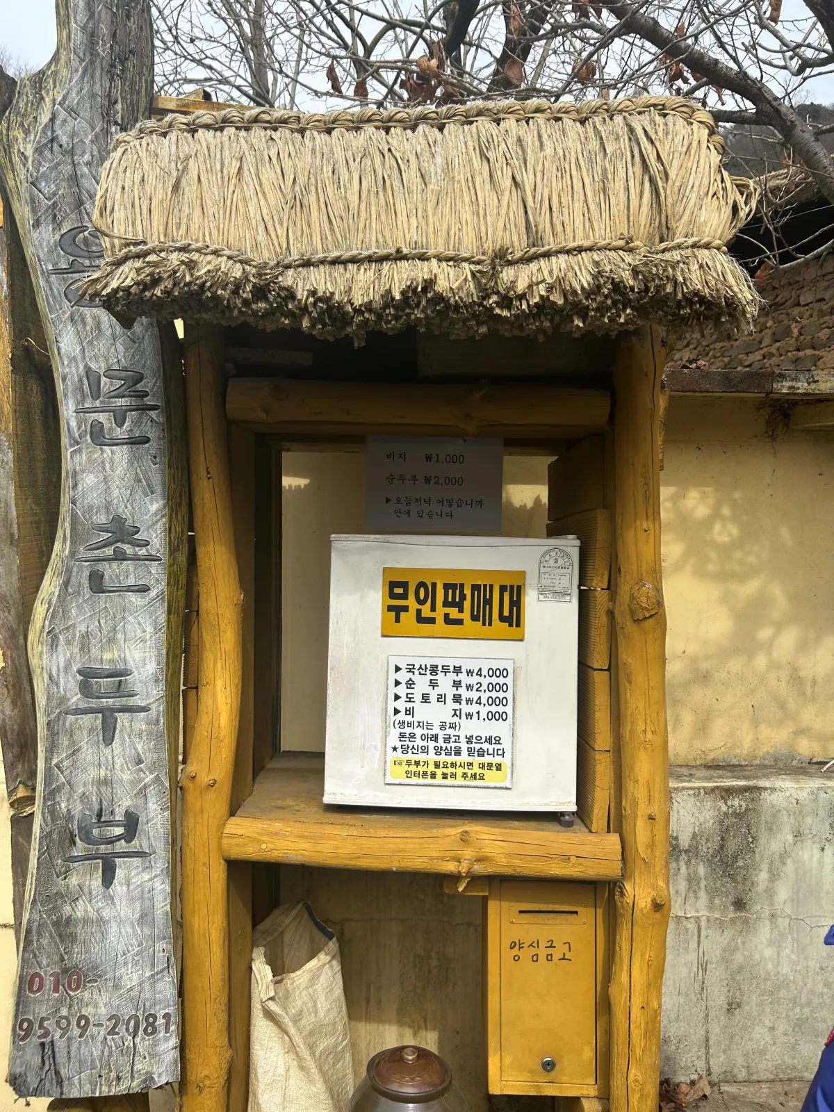 주막처럼 칼국수, 국수, 막걸리, 식혜 같은 거 파는 곳과 아이들이 좋아하는 달고나, 아이스크림을 판매하는 점빵이 있던데 평일은 운영을 안 하시는 거 같았어요.