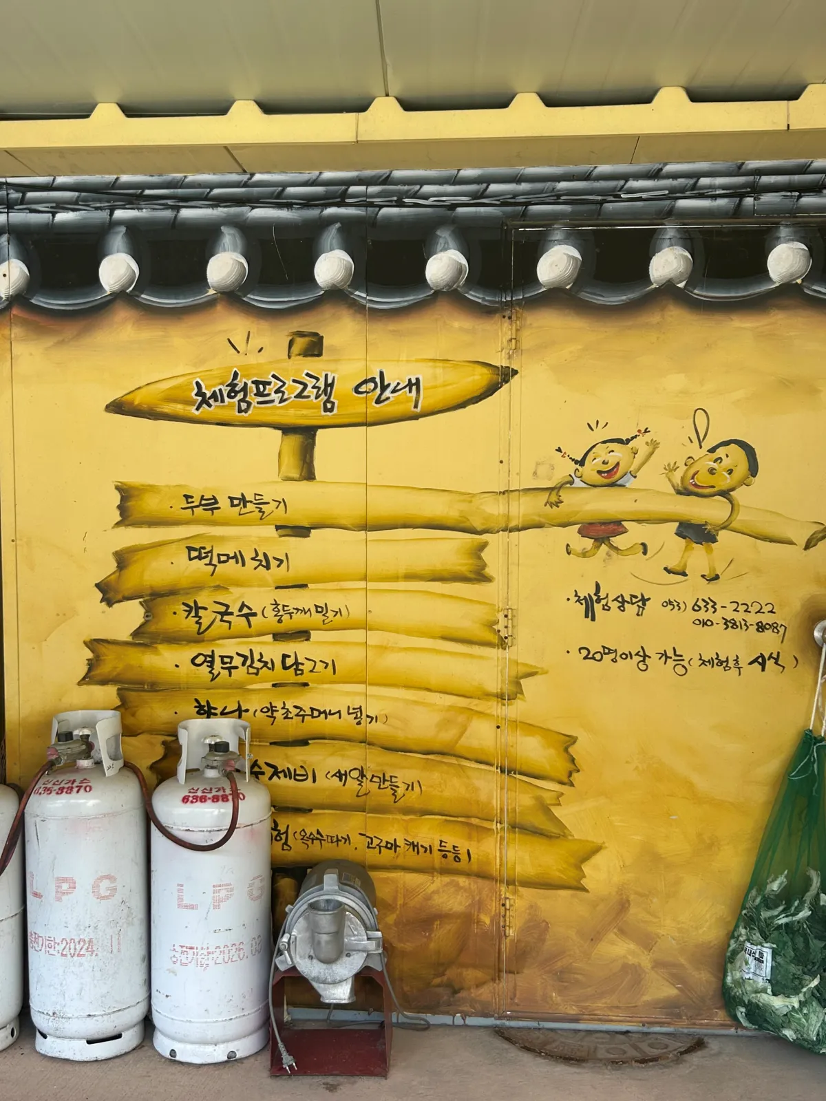 두부 만들기, 떡메치기, 김치 만들기 등등 체험 예약을 해야지 진행이 되는 거 같았어요.