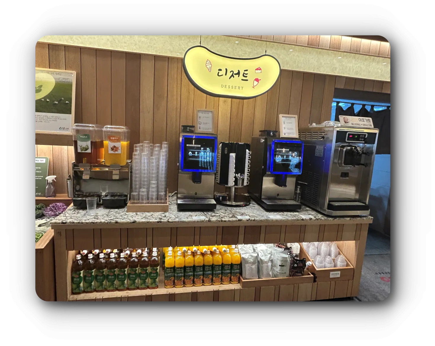 그 정도 규모이면 아이들이 놀 수 있는 키즈룸도 있을 만 한데 그건 없더라고요. 무한리필 가게라 식사 제한시간이 있어서 놀 시간이 없어서 안 만드신 건가??? 그래서 그런지 소리 지르는 아이들이 없더군요.