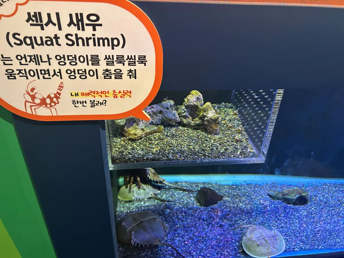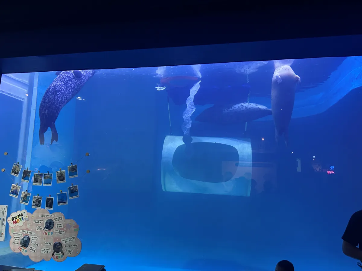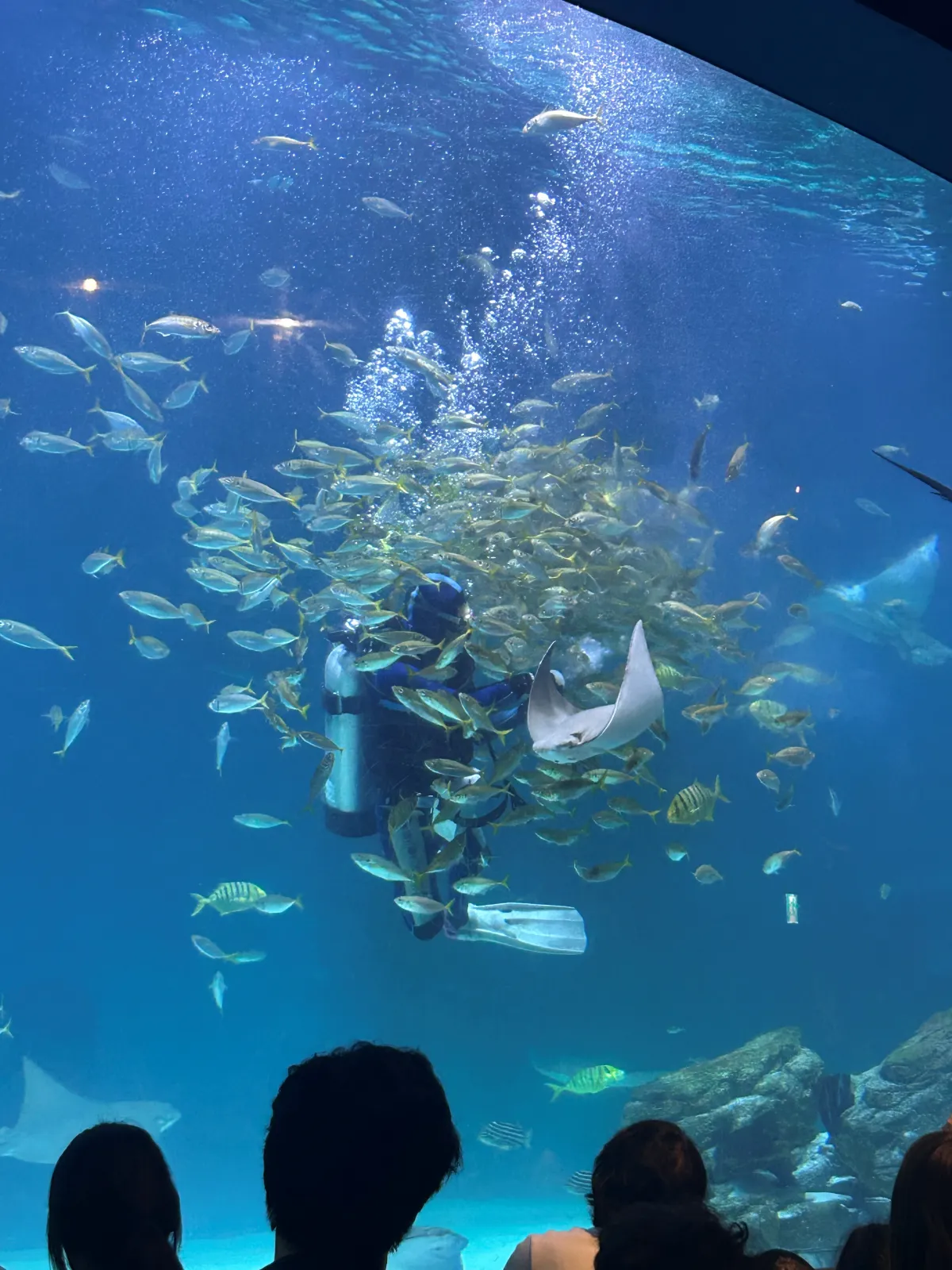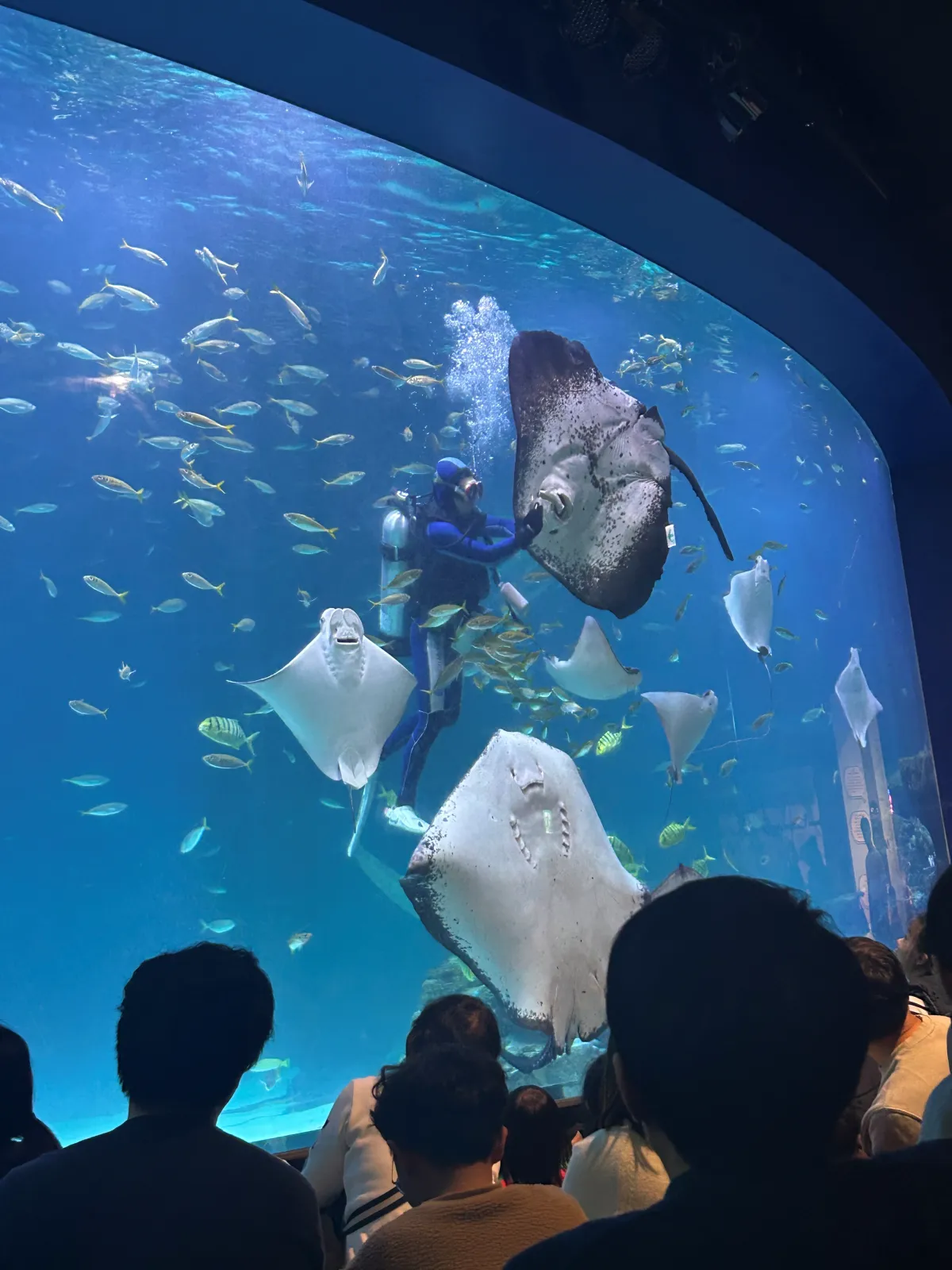 엄청 큰 가오리들이 먹이를 먹기 위해 달려드는데 무섭더라고요. 진공청소기 흡입하듯이 먹이를 유리벽에 밀착시켜 먹는 모습이 신기했어요.