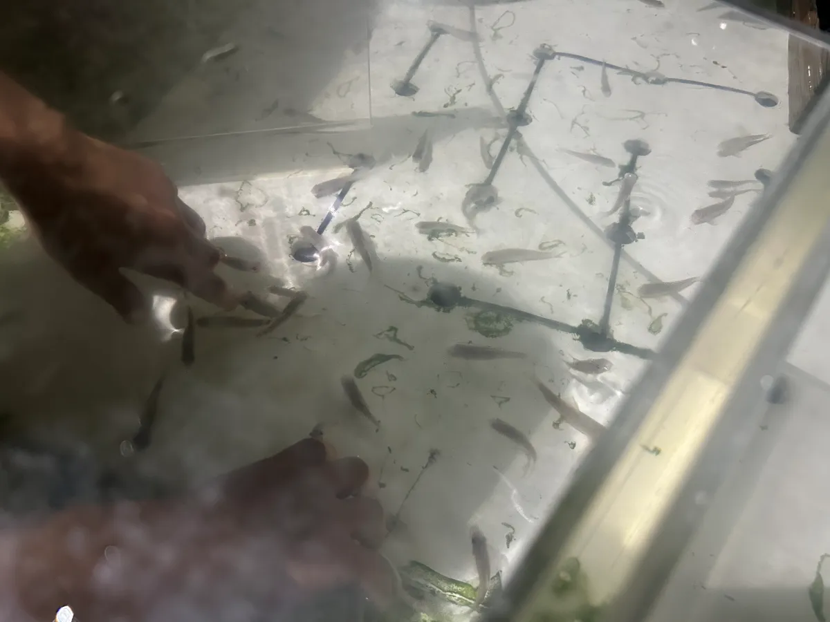 가오리들 식사 시간이 끝나면 나머지 물고기들에게도 밥을 줘요. 하얀 병을 누르니 모든 물고기들이 다 모여들더라고요. 정말 그림같이 아름다웠습니다.