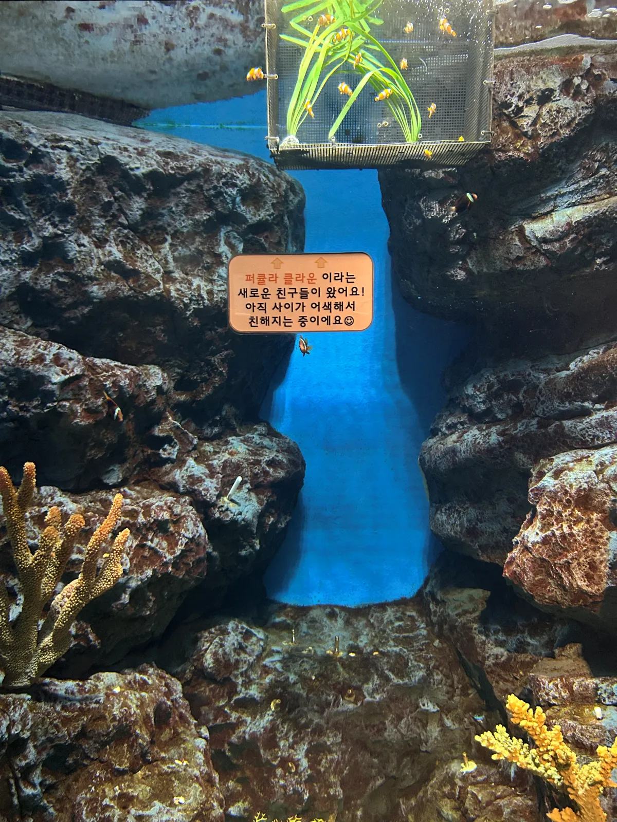 새로 이사 온 친구들도 많아서 적응기간이라고 따로 분리가 되어 있는 친구들을 볼 수 있었어요. 피라니아와 대왕 문어 대왕 새우, 펭귄 등등 여전히 그대로인 친구들도 있었고요.
