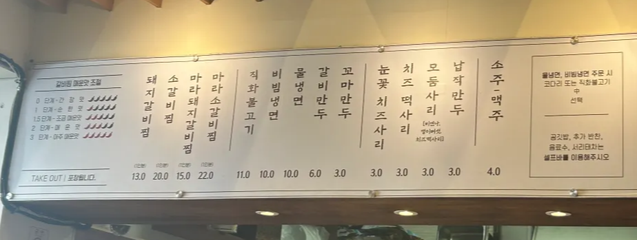 맵기 단계도 자세히 나눠져 있어서 선택하기 어려움이 없었어요. 인기메뉴인 돼지갈비찜 2인분 저희는 순한 맛으로 주문했어요. 저희한텐 딱 적당하더라고요.