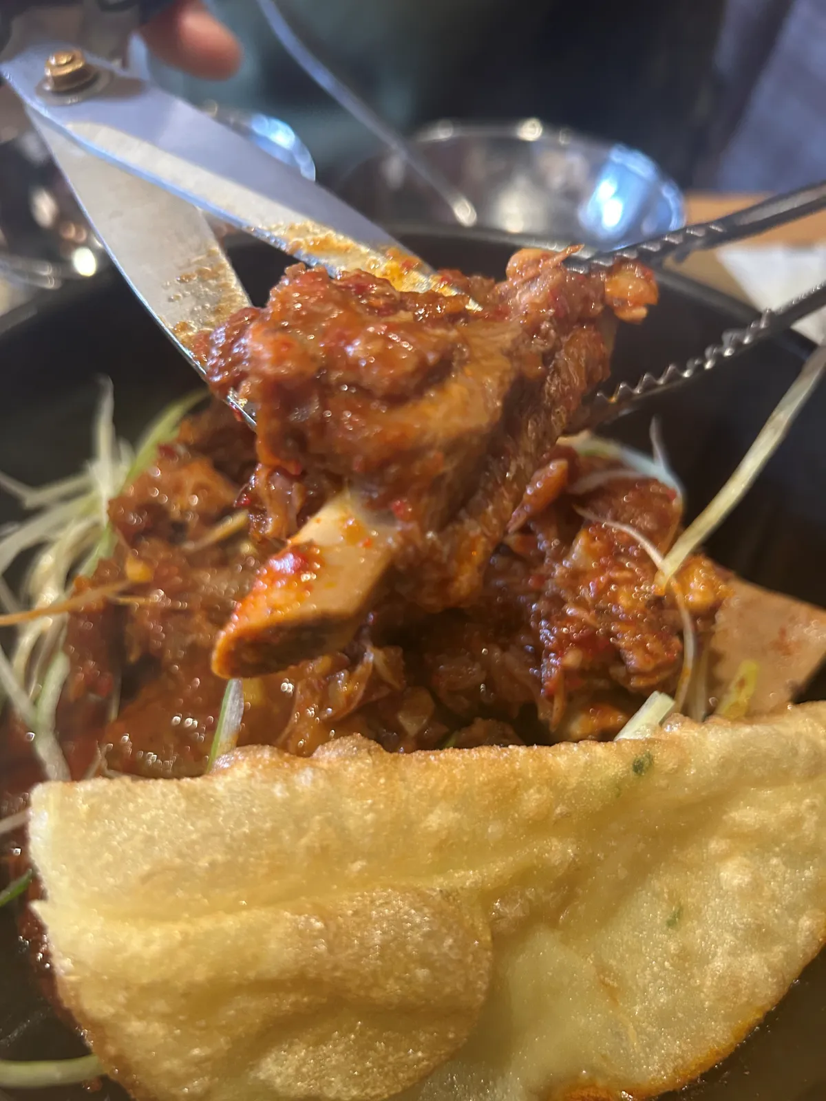 - 갈비찜이 나오면 갈비와 살을 분리해서 먹기 좋은 크기로 자르기