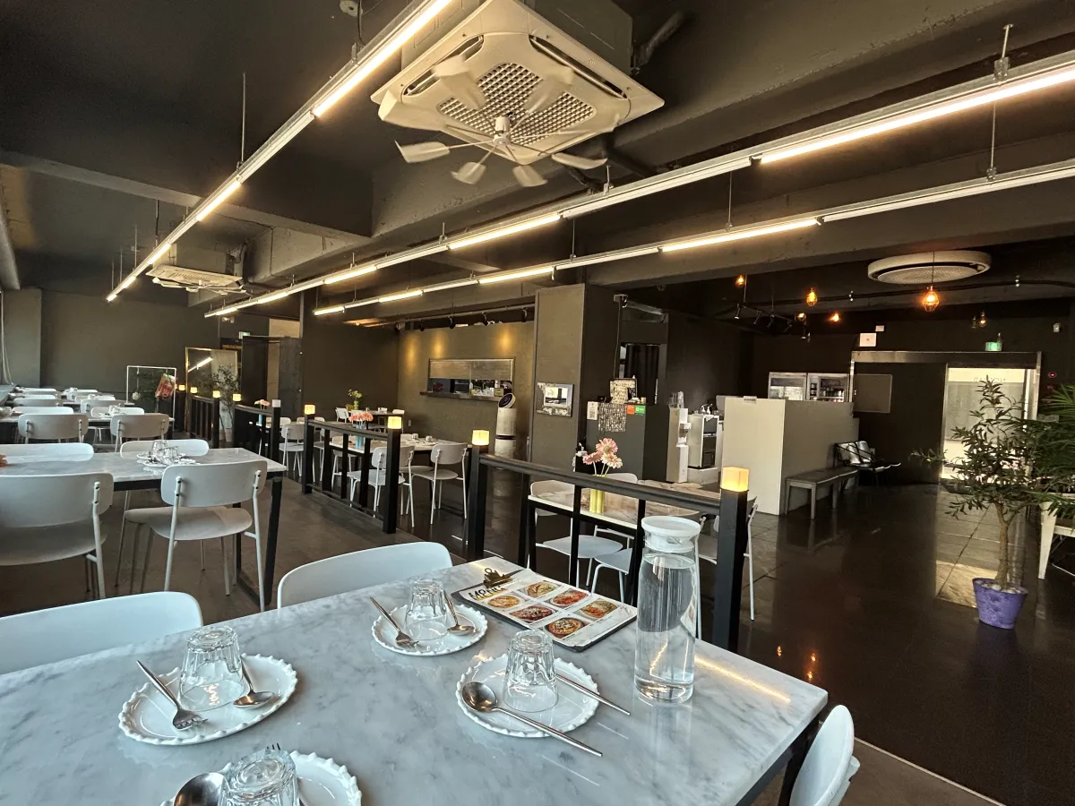 저희는 미리 전날에 예약을 하고 갔어요^^ 홀이 넓어요. 오픈형식의 룸도 하나 있어서 10명정도 오시면 그쪽으로 예약을 하셔도 좋을 거 같아요. 그릇과 식기가 예쁘죠? 심플하면서도 그릇이 하나하나 신경을 쓰신 게 보이더라고요.