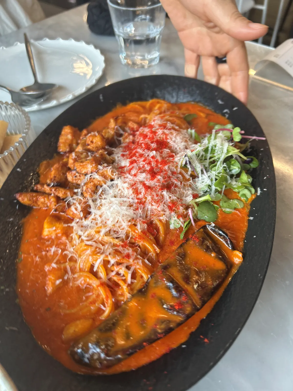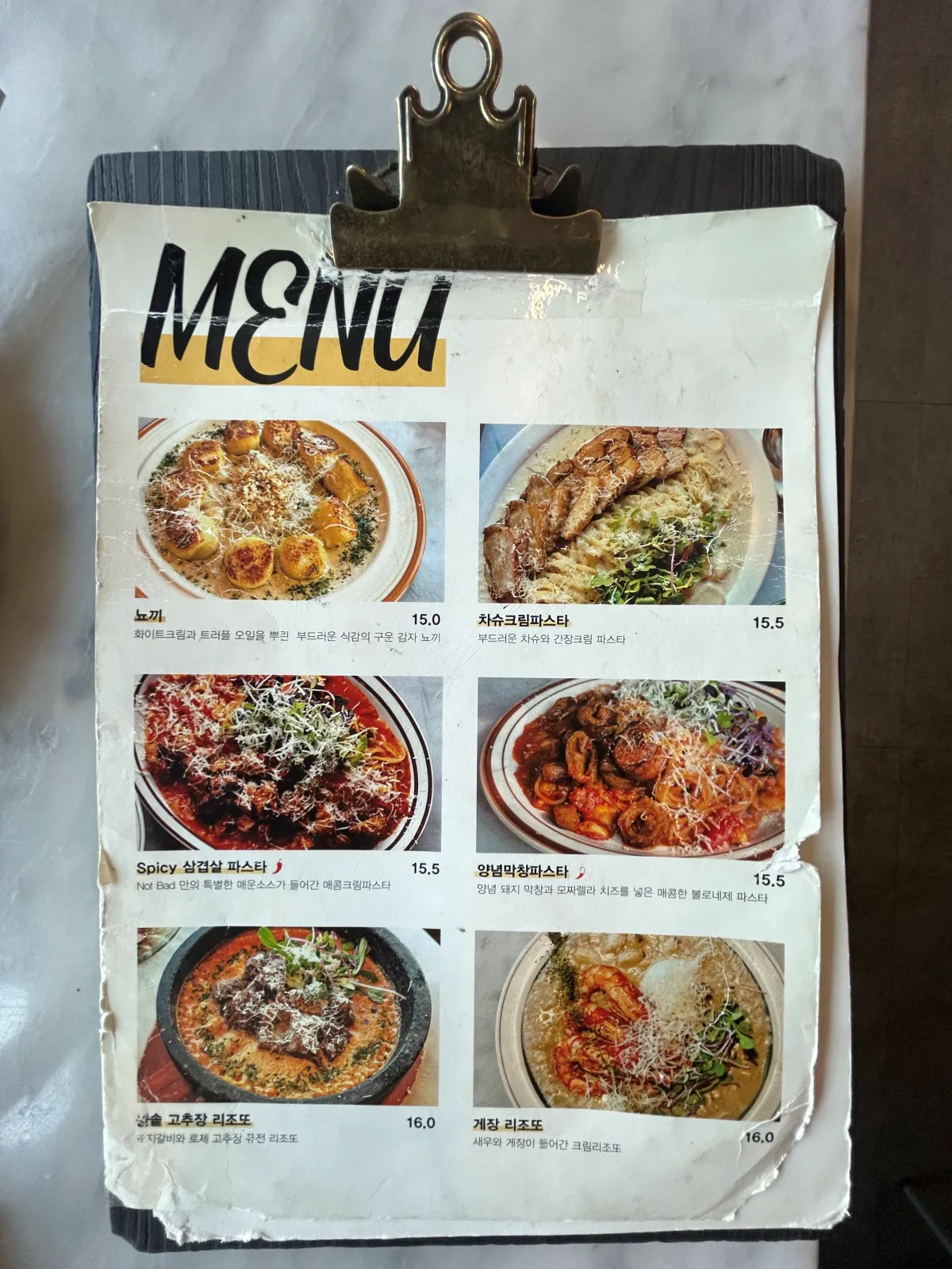 자극적인걸 좋아하시면 spicy삼겹살 파스타 추천 드리고요. 뇨끼와 게장리조토는 평탄했어요~