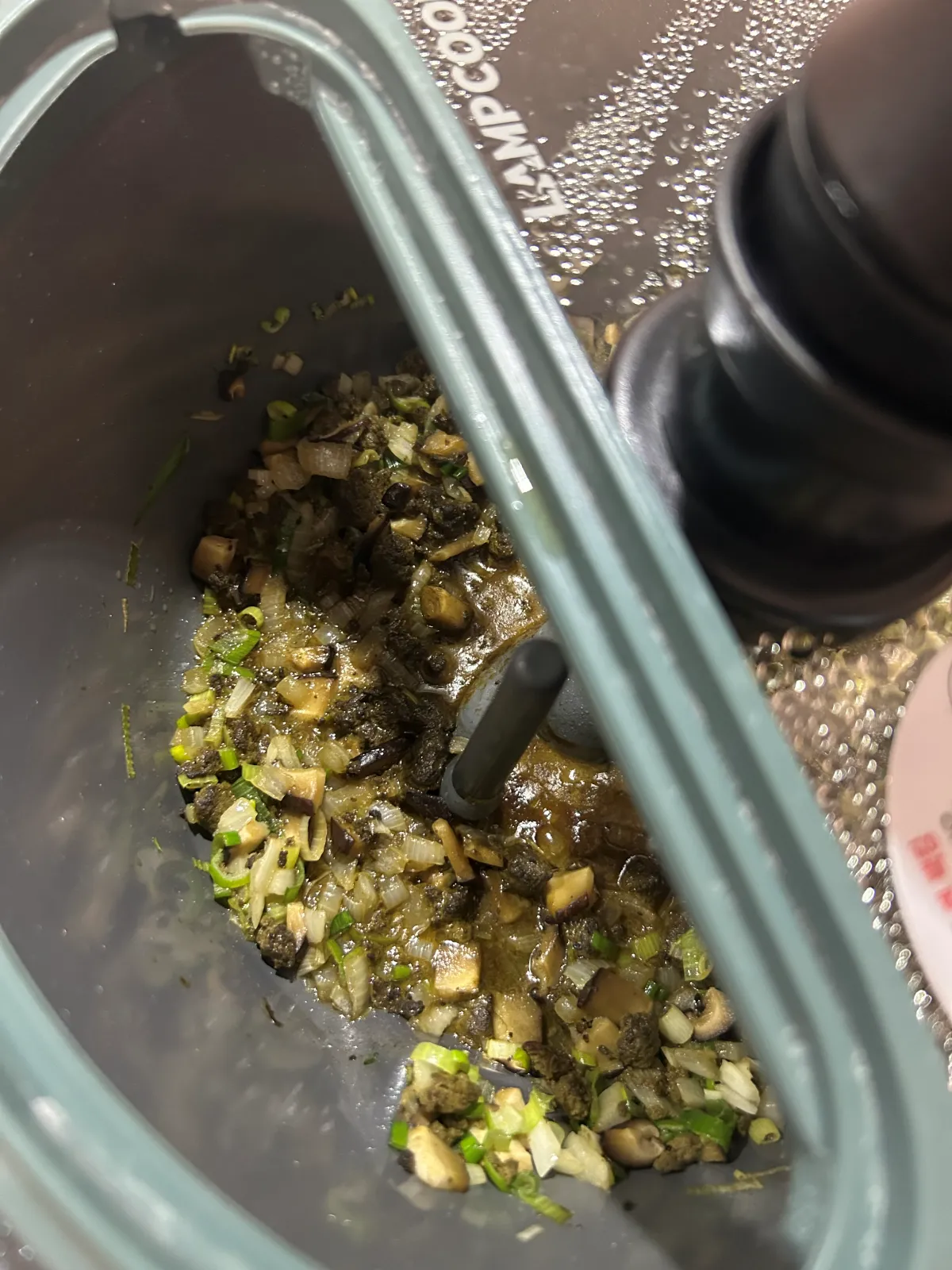 먼저 참기름, 전복 내장, 야채 넣고 자동 회전 그릴 돌려줍니다.