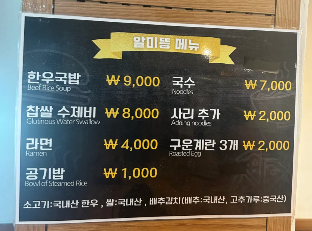 여자들은 국수와 찹쌀 수제비, 남자들은 국밥과 라면을 선호하는 듯 보였어요